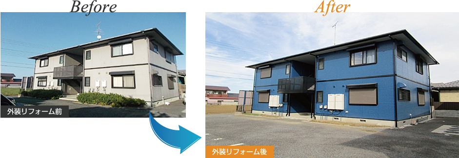 外壁塗装をすることで、見た目は当然美しく、そして機能面も高まりますので、物件の維持管理及び入居率アップに効果があります。