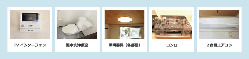 今では必須設備となっている温水洗浄便座、TVインターフォン、照明器具、コンロ、エアコンなど、弊社では全室標準での設置をご提案し入居率を高めています。